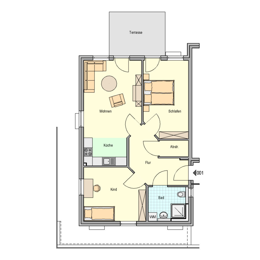 Alle Geschosse sind barrierefrei mit einem Aufzug erreichbar. Im Keller befindet sich ein Fahrradraum sowie einen Waschmaschienenraum.